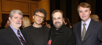 Above: George Lucas, Jerry Harrison, Phil Ramone and Colin Pringle; Right: Colin Pringle and Sir George Martin